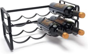 - STRONG AND DURABLE: Crafted in flat steel wire with black powder coating to form a strong cradle, with safety bars that slant down to prevent the bottle from sliding forward.